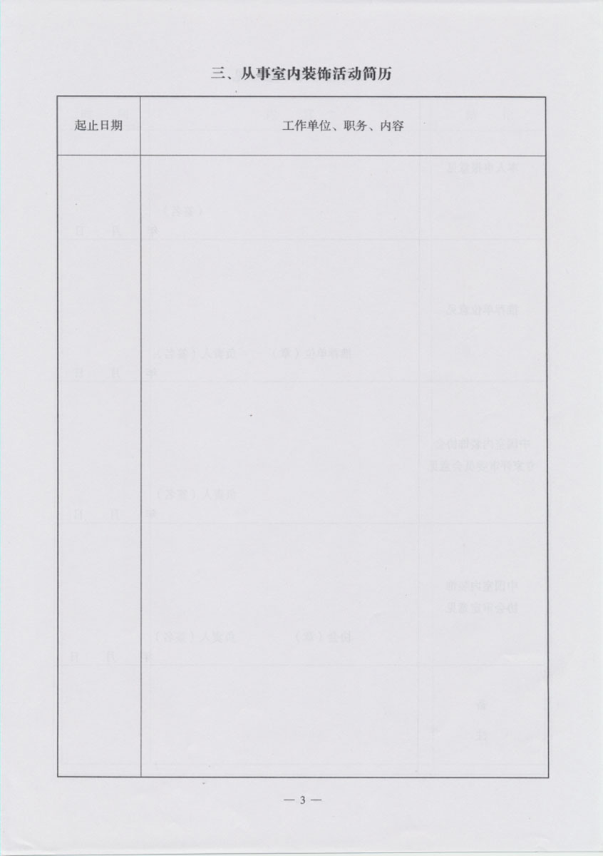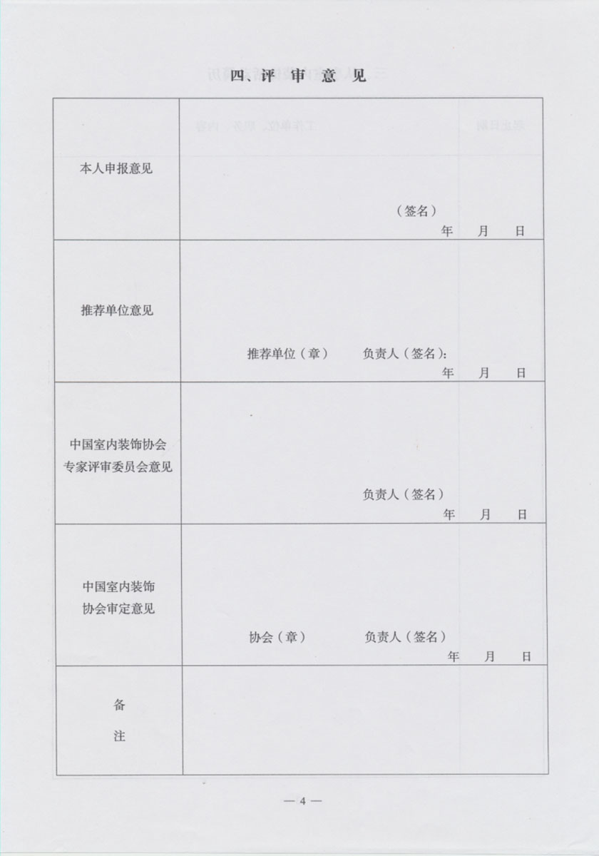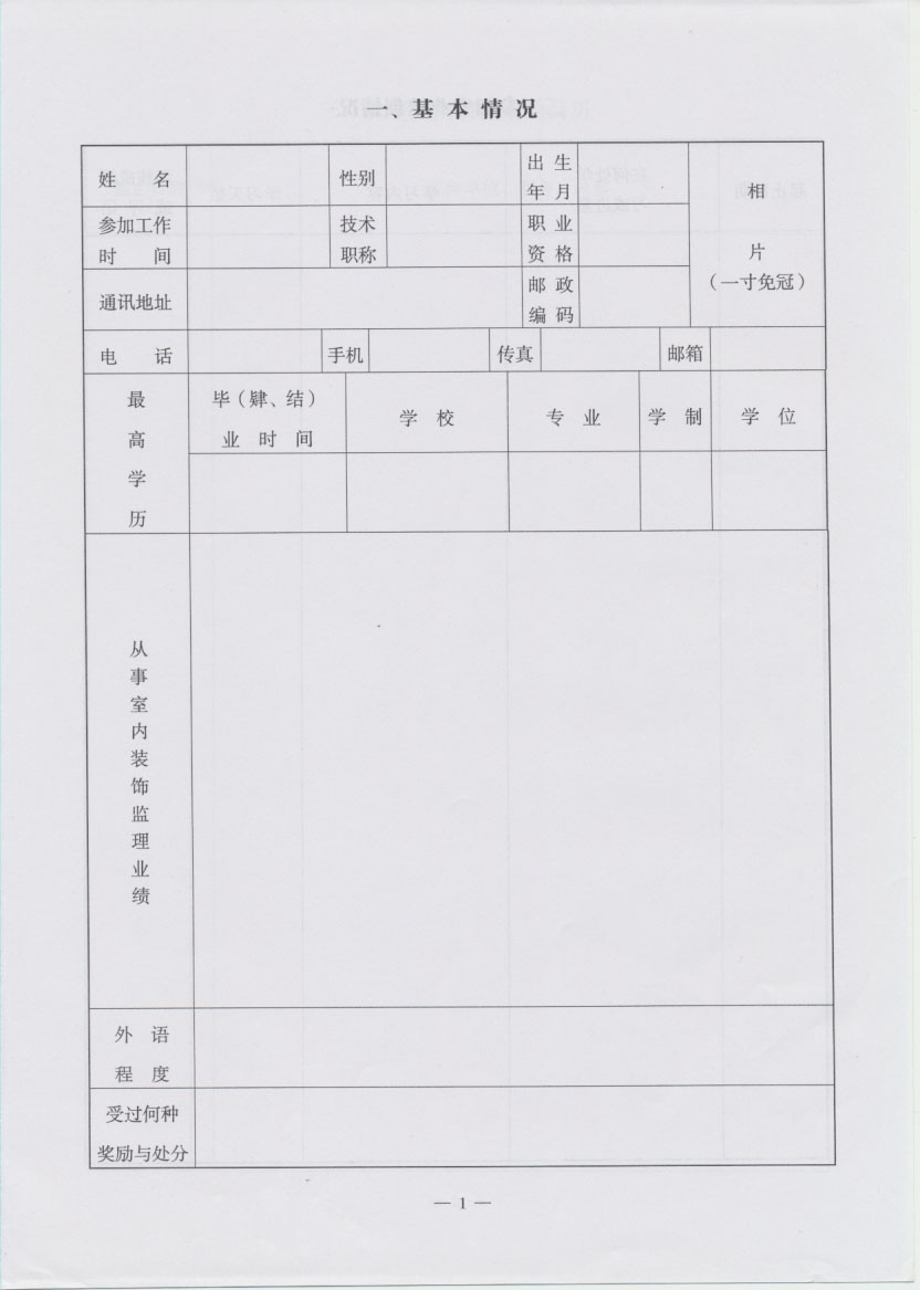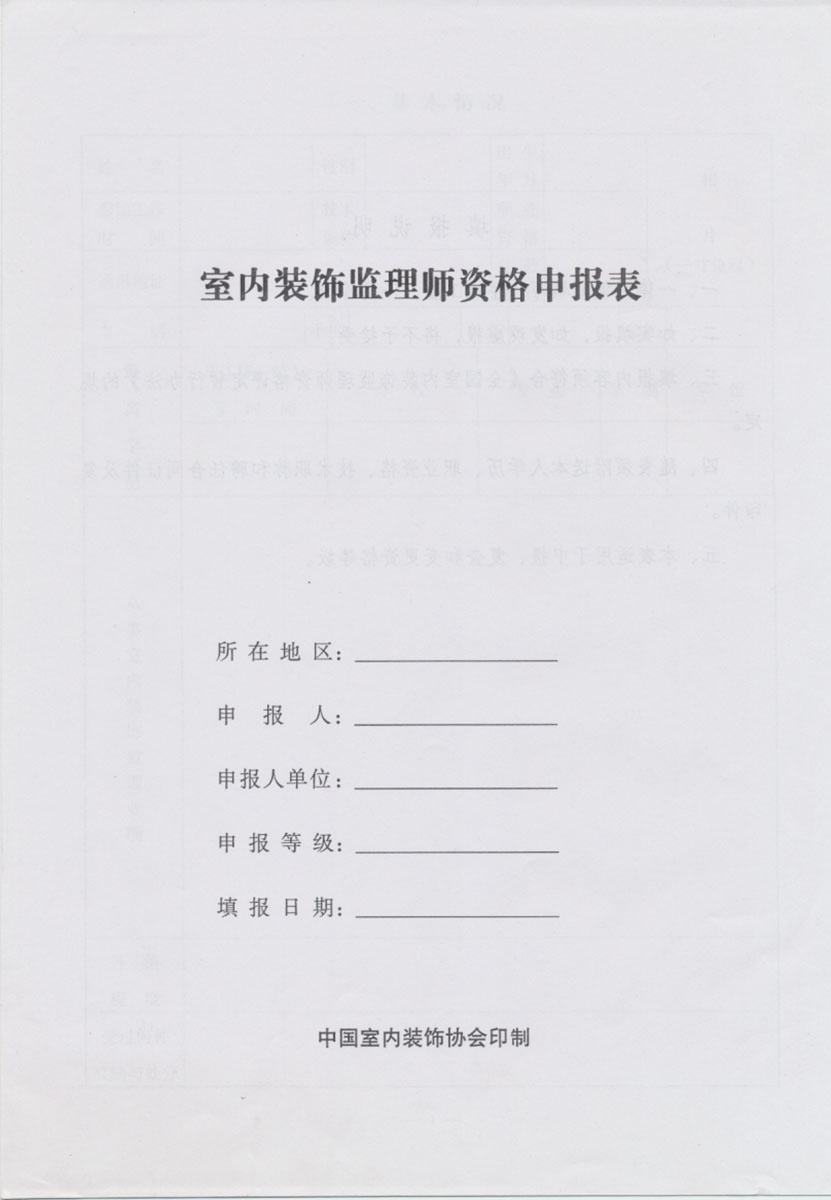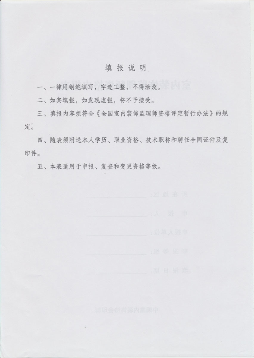 • 室内装饰监理师资格申报表